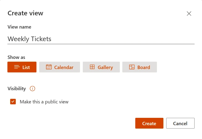 A pop-up window will appear, prompting you to name your new view and choose whether to make it public (visible to everyone) or private (visible only to you).