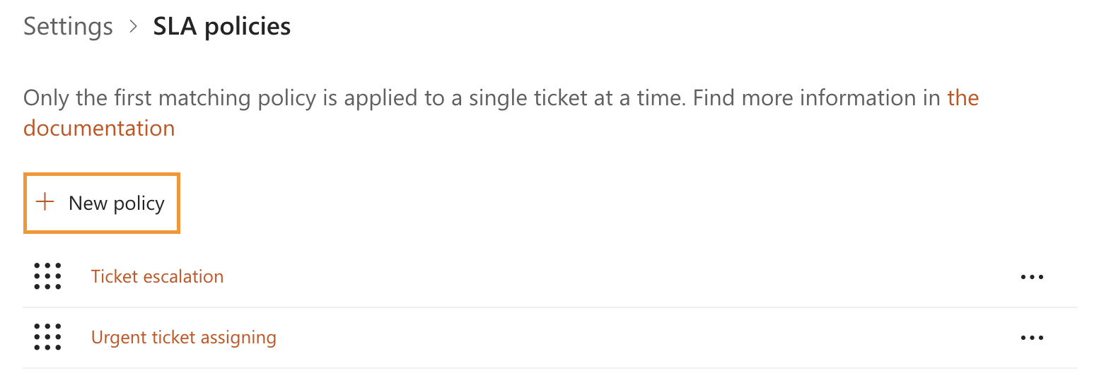 To create a new SLA, navigate to Settings and click SLA policies.